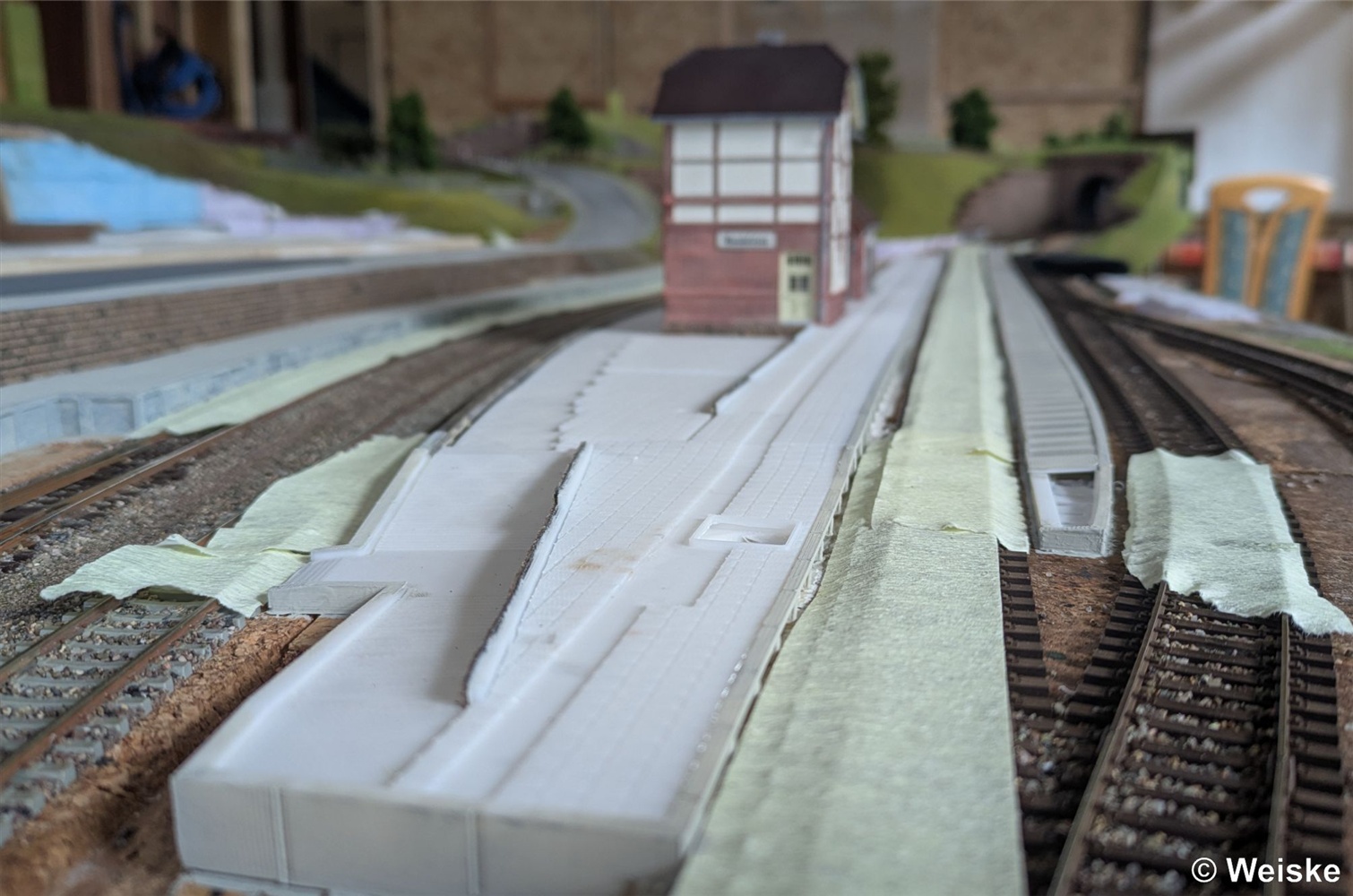 Die Bahnsteigkanten sind gesetzt, der Längengewinn im Vergleich zur alten Variante ist beachtlich.