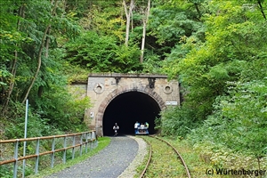 Es ist schon ein erhebendes Gefühl, wenn man wie ein Inspektionstrupp so durch diese alten Gewölbe "radelt". Der Radweg auf dem zweiten Planum ist ständiger Begleiter. Ein Wettrennen "Fahrrad gegen Draisine" ist aufgrund der Massenungleichheit allerdings nicht zu empfehlen.