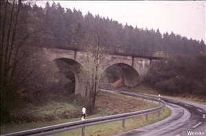 Das größte Brückenbauwerk der Strecke befand sich auf bayerischer Seite. Zwischen Mühlfeld und Mellrichstadt überquert die Bahnlinie hier die Landstraße und einen kleinen Bach.