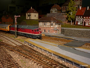 Der Bahnhof "Wermsdorf" (b. Oschatz) inspirierte die Glossener Modelleisenbahner zum Nachbau. Mit diesem und einigen anderen Teilen ihrer großen H0e-Anlage besuchen sie uns in diesem Jahr.